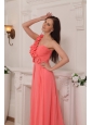 Home >  Prom Dresses >  Best Prom Dresses > Watermelon Empire One Shoulder Brush Train Chiffon Handle Flowers Prom / Pageant Dress