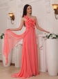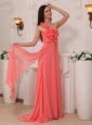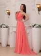 Watermelon Empire One Shoulder Brush Train Chiffon Handle Flowers Prom / Pageant Dress