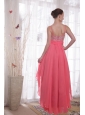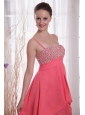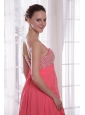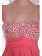 Watermelon Empire Straps High-low Chiffon Beading Prom Dress
