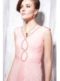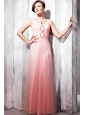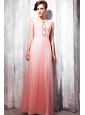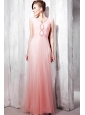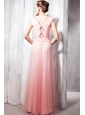 Watermelon Empire V-neck Floor-length Tulle Beading Prom / Party Dress