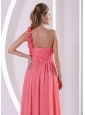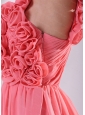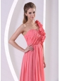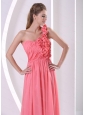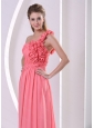 Watermelon Hand Made Flowers One Shoulder Dama Dress