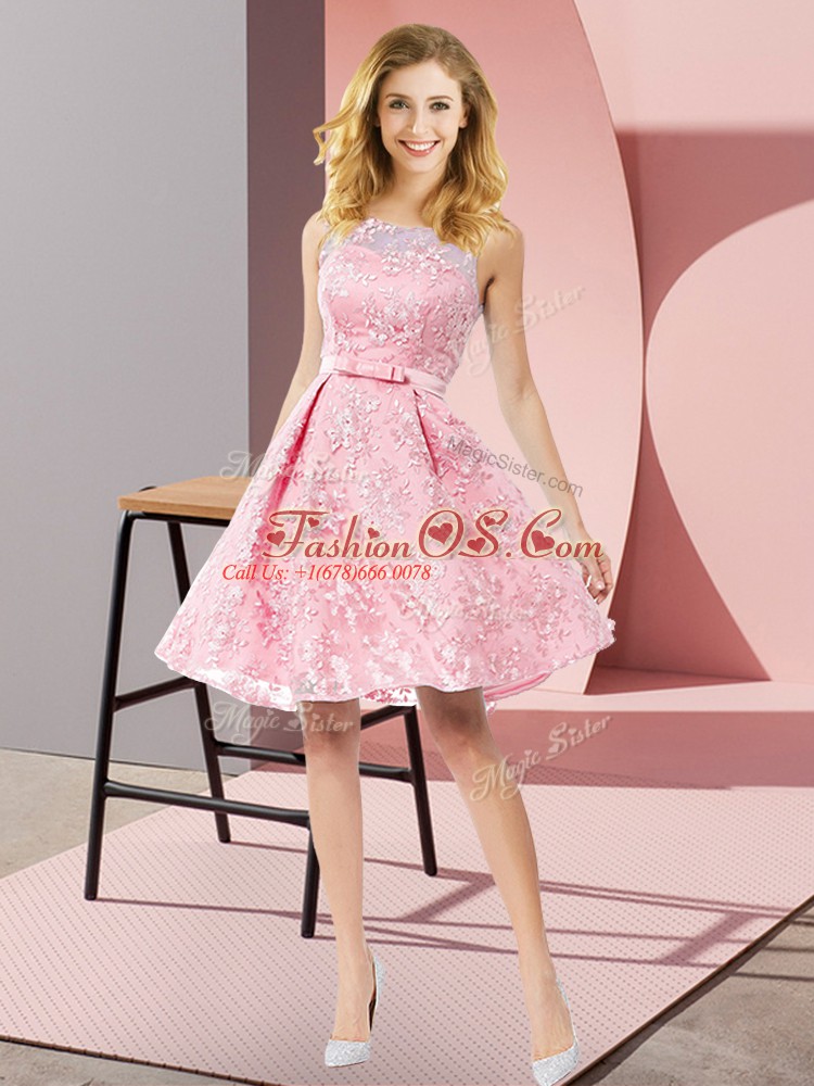 Home >  Special Occasion Dresses >  Discount Dama Dresses > Watermelon Red A-line Scoop Sleeveless Lace Knee Length Zipper Bowknot Quinceanera Dama Dress
