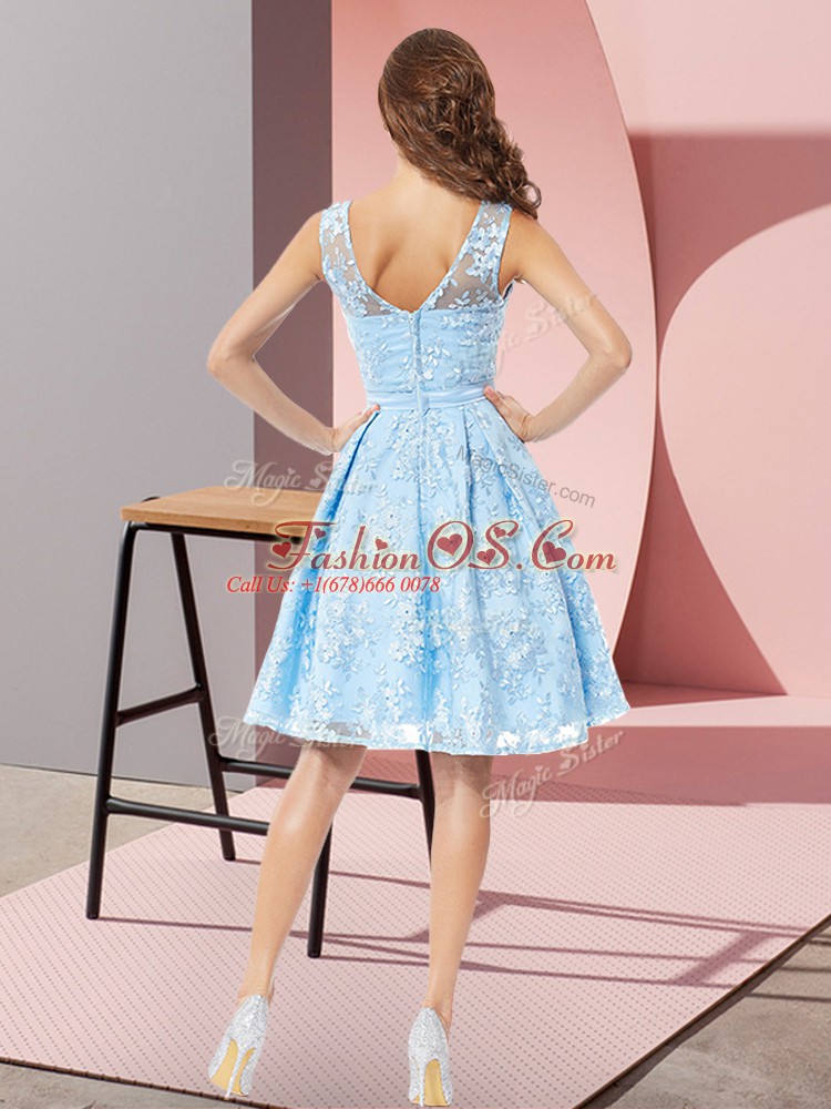 Watermelon Red A-line Scoop Sleeveless Lace Knee Length Zipper Bowknot Quinceanera Dama Dress
