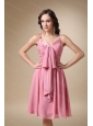 This pretty dress is both beautiful and fun to wear! The flirt V-neck accented with a long bowknot that perfectly combined with the pleated bodice and straps intersect in the back to add another dimension of beauty to an already lovely dress. The airy chiffon makes the dress fitted for any shape. The short design makes you comfortable. A wonderful choice for any formal affair!