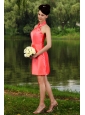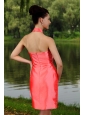 Home >  Special Occasion Dresses >  Homecoming Dresses > Watermelon Red Column High-neck Mini-length Taffeta Prom / Homecoming Dress