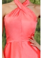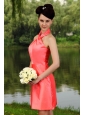 Watermelon Red Column High-neck Mini-length Taffeta Prom / Homecoming Dress