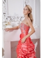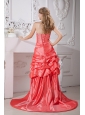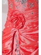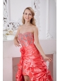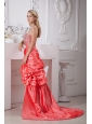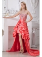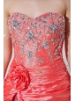 Home >  Prom Dresses >  High Low Prom Dresses > Watermelon Red Column Prom Dress Sweetheart Hand Made Flowers and Beading High-low Taffeta