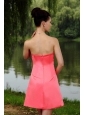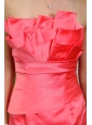 Watermelon Red Column Strapless Prom / Homecoming Dress Ruch Mini-length Taffeta