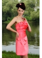 Home >  Prom Dresses >  Short Prom Dresses > Watermelon Red Column Strapless Prom / Homecoming Dress Ruch Mini-length Taffeta