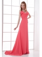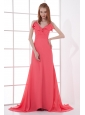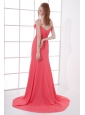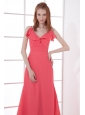 Home >  Prom Dresses >  Discount Prom Dresses > Watermelon Red Empire V-neck Court Train Ruching Prom Dress