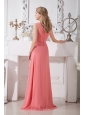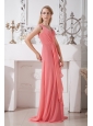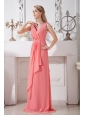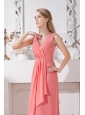 Home >  Bridesmaid Dresses >  Cheap Bridesmaid Dresses > Watermelon Red Empire V-neck Ruch Bridesmaid Dress Chiffon Brush Train