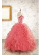 Watermelon Red Exquisite Quinceanera Dresseswith Appliques and Ruffles