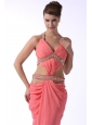 Home >  Prom Dresses >  Sexy Prom Dresses > Watermelon Red Halter Top Sexy Prom Dress with Beading