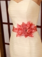 Watermelon Red Hand Made Flower Belt Mermaid Sweetheart Wedding Dress With Chapel Train