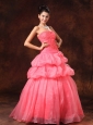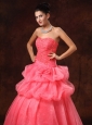 Home >  Prom Dresses >  Beautiful Prom Dresses > Watermelon Red Hand Made Flowers And Appliques A-line Strapless Organza 2013 New Arrival Prom Gowns For Custom Made