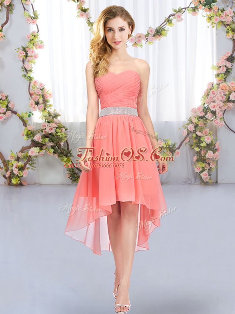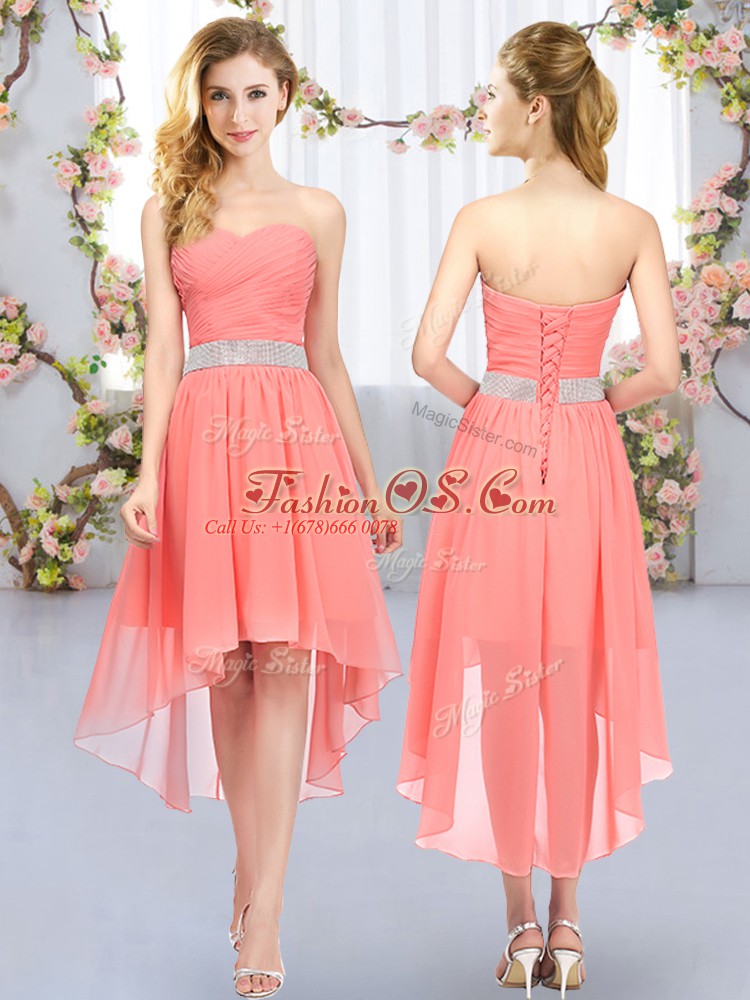 Home >  Special Occasion Dresses >  Cheap Dama Dresses > Watermelon Red Lace Up Dama Dress Belt Sleeveless High Low