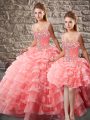 Watermelon Red Lace Up Straps Beading and Ruffled Layers Sweet 16 Quinceanera Dress Organza Sleeveless Court Train