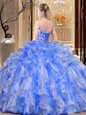 Watermelon Red Lace Up Sweetheart Embroidery and Ruffles 15th Birthday Dress Organza Sleeveless