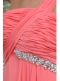 Home >  Prom Dresses >  Fashionable Prom Dresses > Watermelon Red One Shoulder Ruching Beading Floor-length Prom Dress