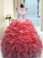 Watermelon Red Scoop Zipper Beading and Ruffles Sweet 16 Dresses Sleeveless