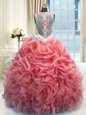 Home >  Quinceanera Dresses >  Puffy Quinceanera Dresses > Watermelon Red Scoop Zipper Beading and Ruffles Sweet 16 Dresses Sleeveless
