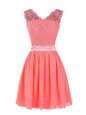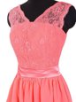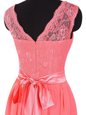 Watermelon Red V-neck Zipper Lace and Sashes|ribbons Dress for Prom Sleeveless