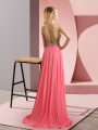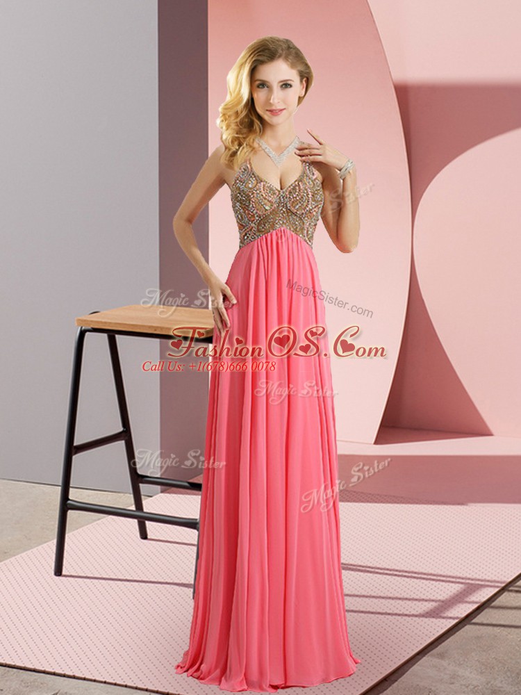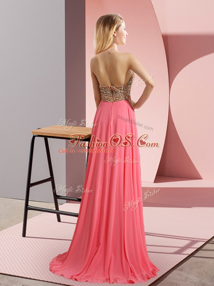 Watermelon Red Zipper Womens Party Dresses Beading Sleeveless Floor Length Sweep Train