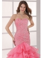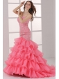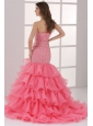 Watermelon Sweetheart Mermaid Beading and Ruffles Layered Prom Dress