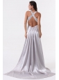 Home >  Prom Dresses >  Sexy Prom Dresses > Watteau Train Silver Straps High Slit Prom Dress with Beading