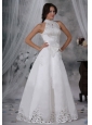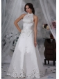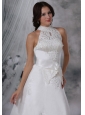Home >  Wedding Dresses >  Latest Wedding Dresses > Waukon Iowa High-neck Appliques Sash A-line Bow Satin Wedding Dress For 2013 Fashionable Style