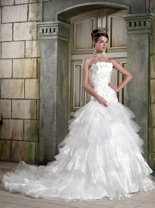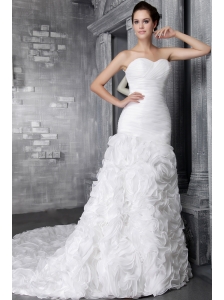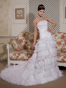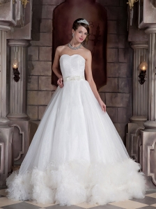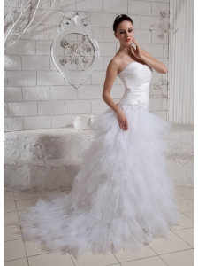 2013 Sweetheart Beading Ruch and Ruffles Wedding Dress With Brush Train