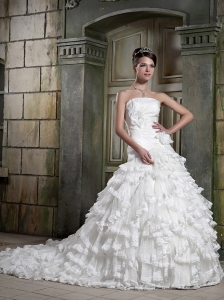 Romantic A-Line / Princess Sweetheart Chapel Train Organza Ruffles Wedding Dress
