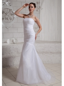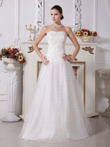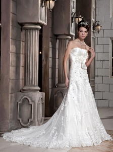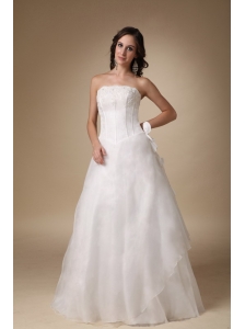 Simple A-line Strapless Floor-length Satin and Organza Appliques Wedding Dress