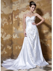 Gorgeous A-line Sweetheart Wedding Dress Taffeta Beading and Pick-ups Court Train