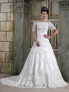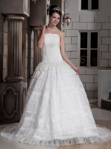 Luxurious Clasp Handle Lace Wedding Dress With Chapel Train Applqiues With Beading