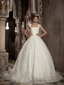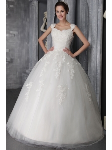 Elegant Ball Gown Straps Floor-length Tulle Lace Appliques Wedding Dress