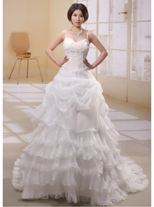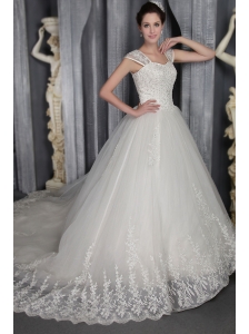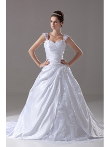 Lace and Appliques Straps A-Line / Princess Straps Court Train Taffeta Wedding Dress