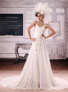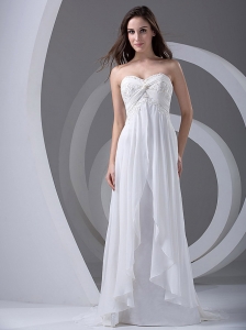 White Simple Sweetheart Chiffon A-Line Court Train Wedding Dress