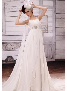 Brand new Empire V-neck Court Train Chiffon Bowknot and Ruch Wedding Dress