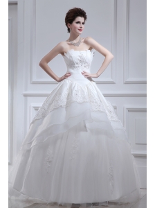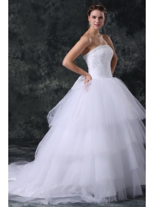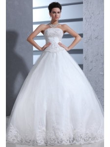 Ball Gown Strapless Lace Appliques Wedding Dress with Chapel Train