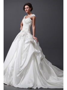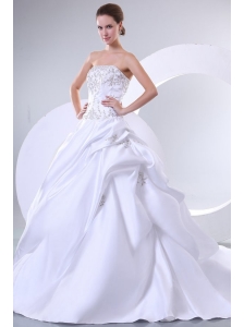 2014 Appliques Ball Gown Court Train Wedding Dress with Strapless