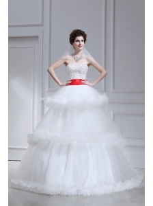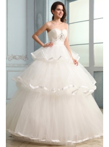 Ball Gown Sweetheart Beading and Ruffles Layered Wedding Dress