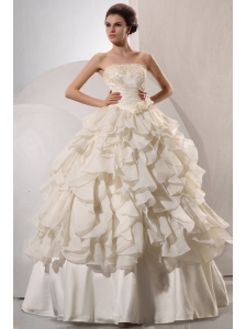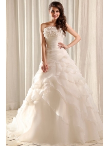 Beading and Flower Strapless Wedding Dress with Ruffles Layered