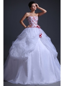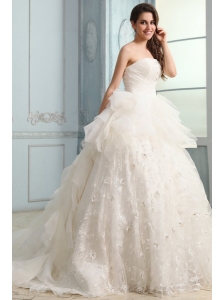 Ball Gown Strapless Appliques and Hand Made Flowers Wedding Dress