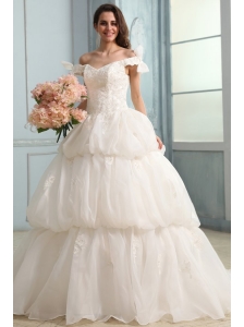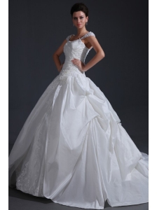 Ball Gown Wide Straps Wedding Dress with Appliques and Flowers