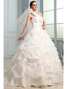 One Shoulder Ball Gown Beading and Appliques Organza Wedding Dress