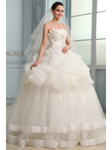 Luxurious Ball Gown Strapless Wedding Dress with Appliques and Ruching