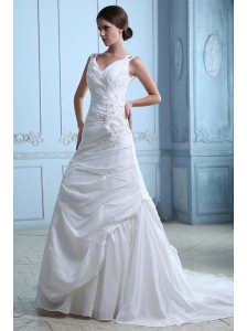 Gorgeous A-line V-neck Ruffles and Ruch Wedding Dress Brush Train Taffeta and Organza