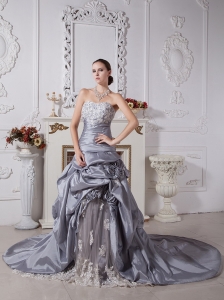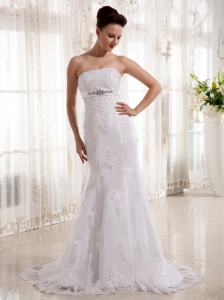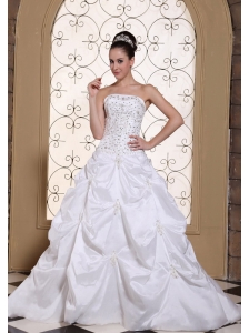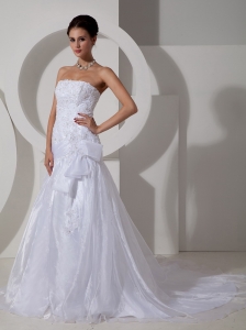 Classical Wedding Dress A-line Strapless Appliques Court Train Satin