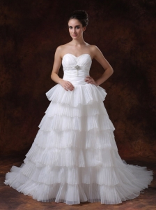 Brand New A-line Sweetheart Wedding Dress Chiffon Beading Brush Train
